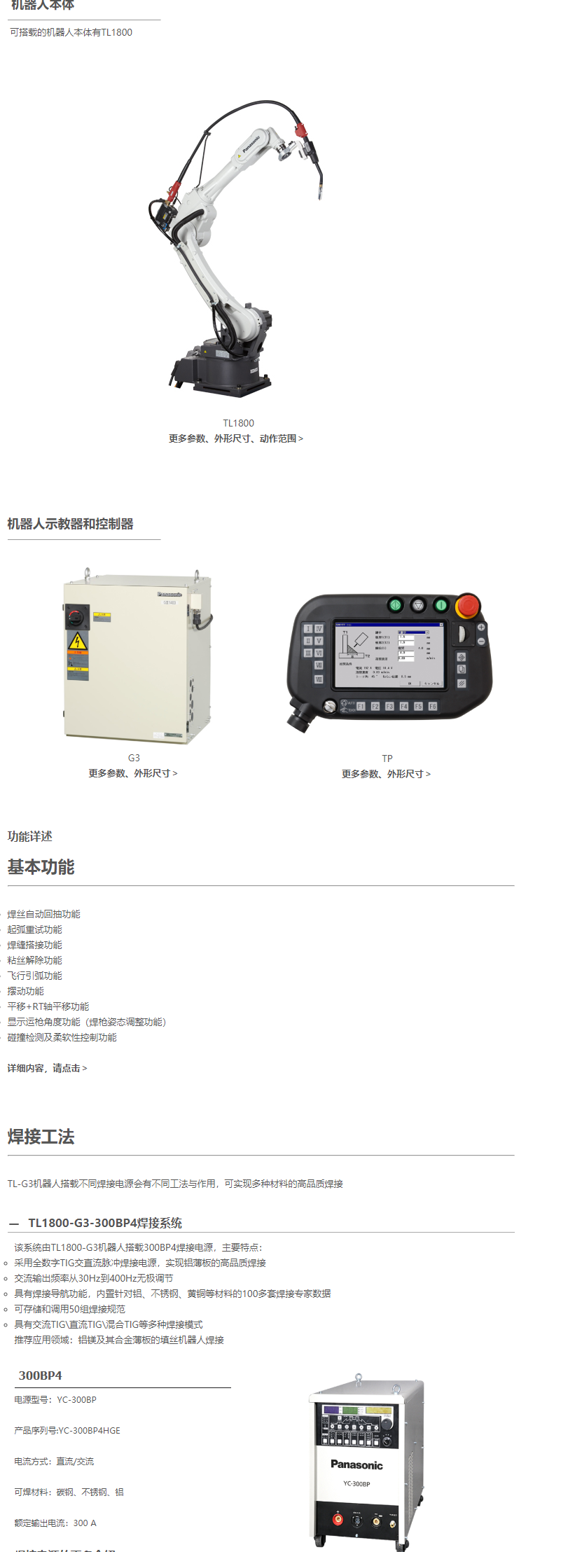 TL-G3機器人一般也簡單地稱為TL機器人,它是由TL焊接機器人本體搭載G3控制器組成,主要特點: